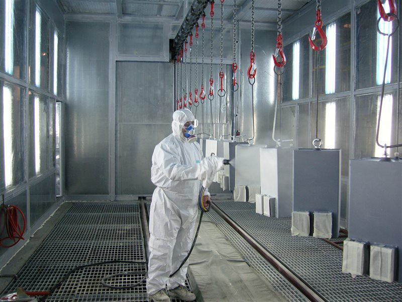項目采用德國進口靜電噴槍,電子自動調漆技術,電子配比準確無誤。生產線中,大件噴漆通過平臺車輸送,小件噴漆通過懸掛鏈輸送,大小件噴漆采用共線生產形式。交叉作業既能滿足小件懸掛噴漆作業,又能在小件不生產時,滿足大件噴漆作業;同時兩種工件都能在噴漆后采用烘干作業。