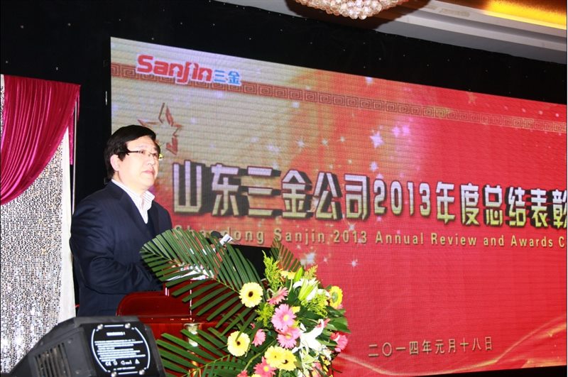 元月18日下午3:30分,山東三金公司2013年度總結表彰大會暨新春聯歡晚會在周村鳳臺大酒店二樓大廳隆重舉行。公司2013年度先進個人、先進集體代表、中層以上干部及室主任近200人參加了大會,會議由公司副總經理王平主持。