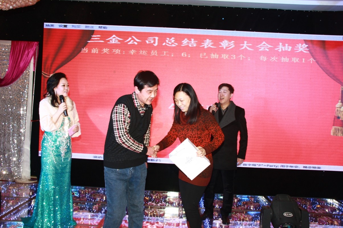 總結表彰大會結束后,一場氣氛活躍、精彩紛呈的新春聯歡會在《中國美》的歌聲中拉開帷幕。獻禮三金55周年的詩朗誦、激情活力的舞蹈串燒、精彩紛呈的互動游戲、主持人風趣的現場問答及抽獎環節高潮迭起,整個會場氣氛熱鬧歡快,大家共享喜悅、述說友情、互致祝福。公司領導和員工紛紛上臺點唱歌曲為大家助興,整個聯歡會呈現出歡樂、祥和、喜慶的氛圍。最后,大會在一曲《明天會更好》的旋律中圓滿落幕。